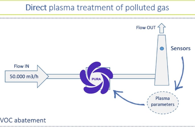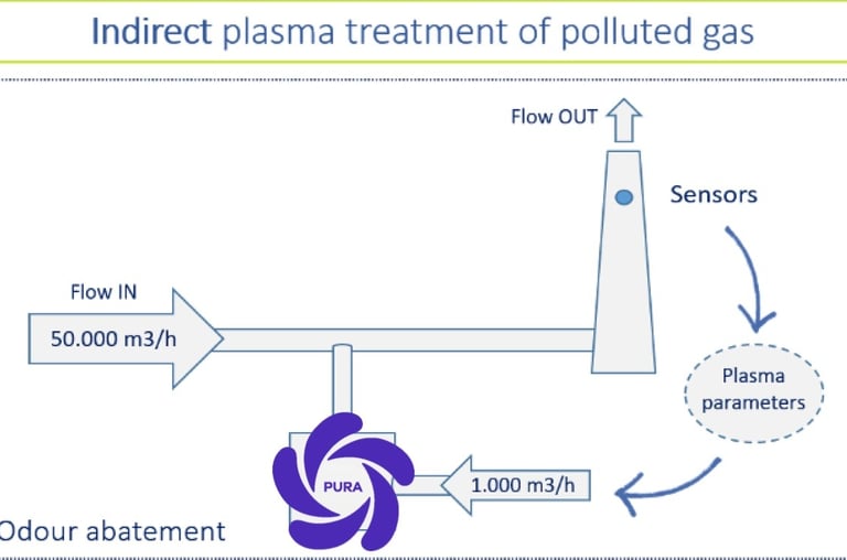 PURA developed a system able to abate the most common pollutants present in air, such as VOCs (volatile organic compounds), NH3 (ammonia) and odours.